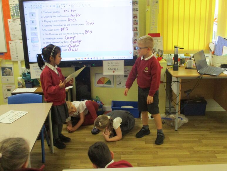 We retold the story in groups and then planned and wrote our own stories which we read to Sapphire Class!