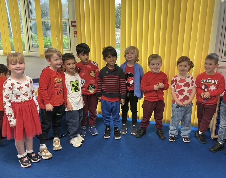 On Friday 17th October all the children came to school wearing something red to show racism, unkindness and bullying the red card.