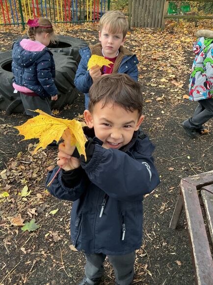 This week the children went on an Autumn walk. They looks for signs that the season had changed and collected Autumn objects. They then used the objects to create Autumn pictures.