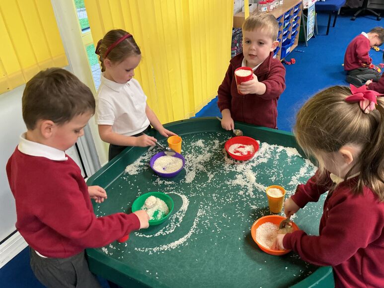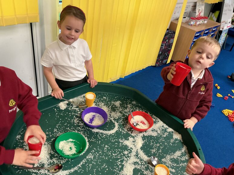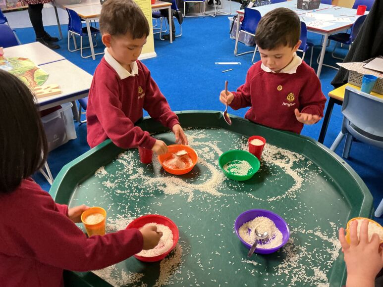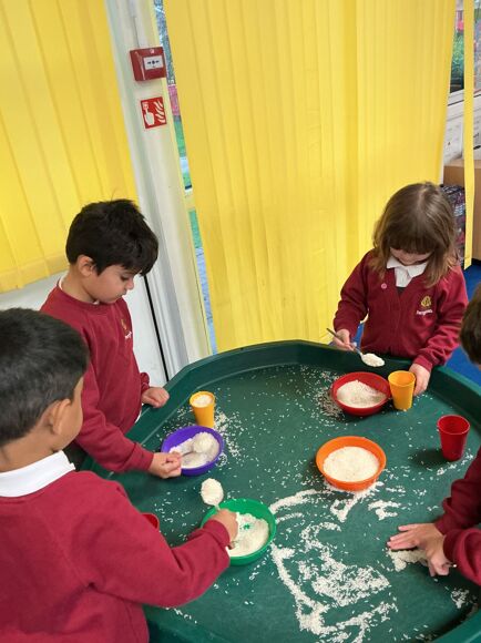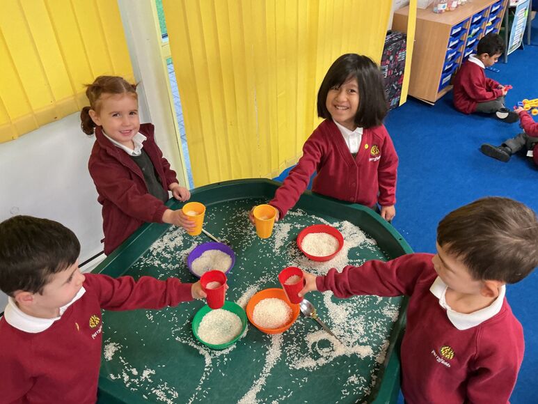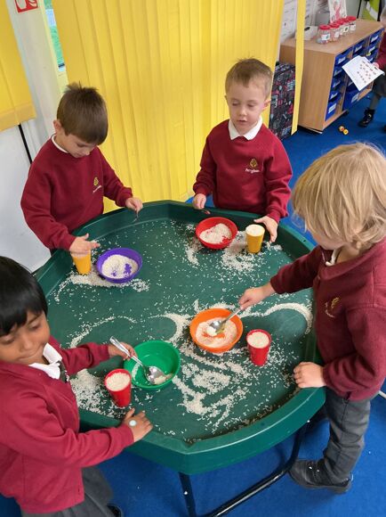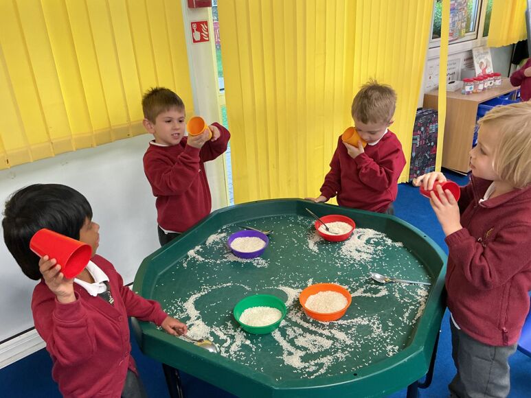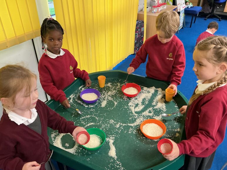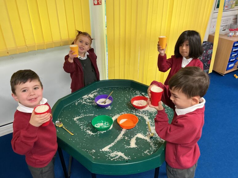 In Maths this week we have been investigating capacity. The children used the rice to show different amounts in the cup.
