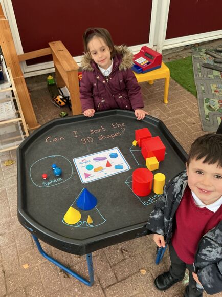 The children have been exploring 3d shape this week in maths. We have been looking at the properties of each shape and comparing and sorting the shapes.