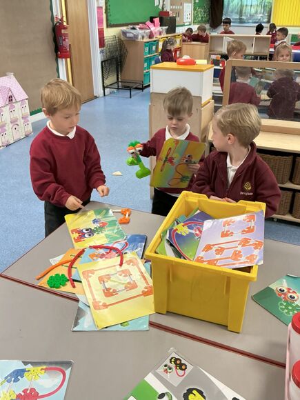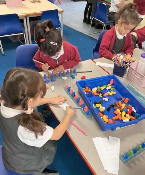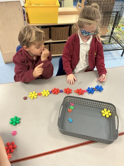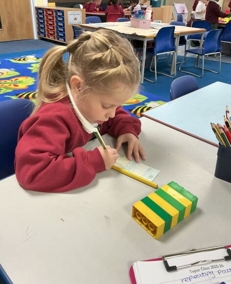 For our maths topic this week the children have been making repeating patterns using a range of classroom resources.
