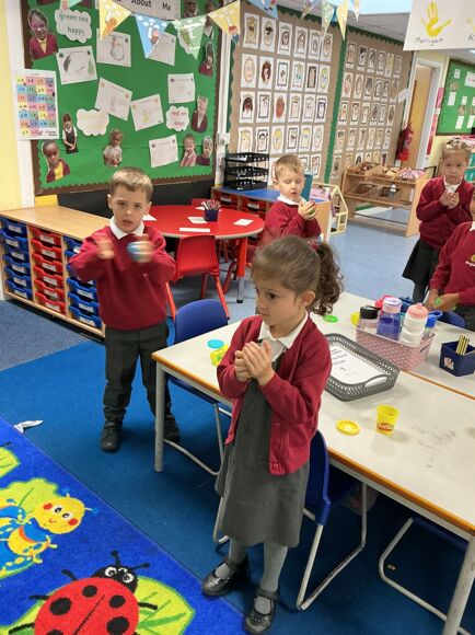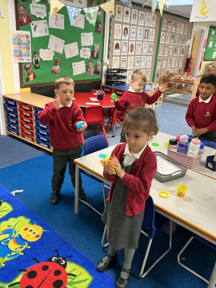 To help develop their fine motor skills all the children take part in dough disco exercises every morning before they start writing in their phonics lessons. Using the play dough helps to warm up the muscles we use when holding our pencil and writing.
