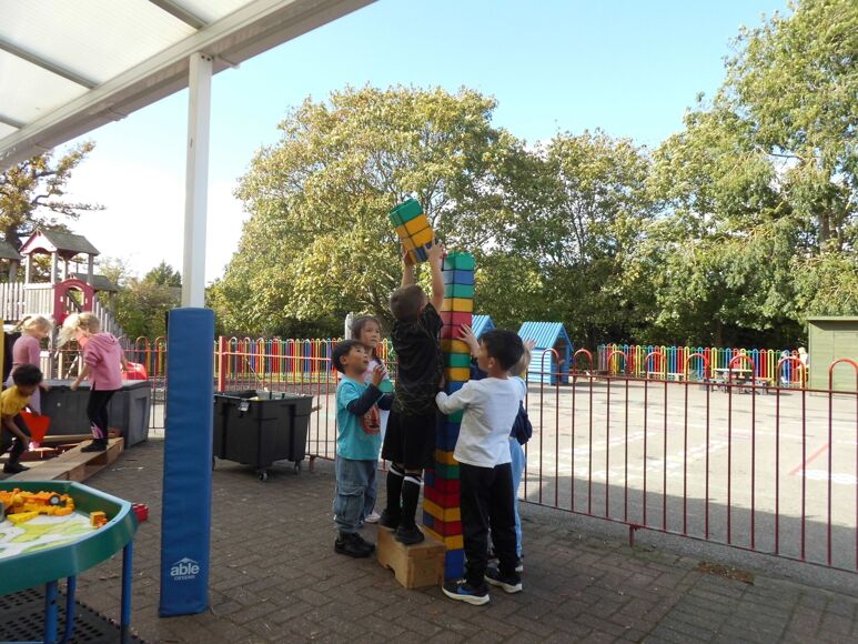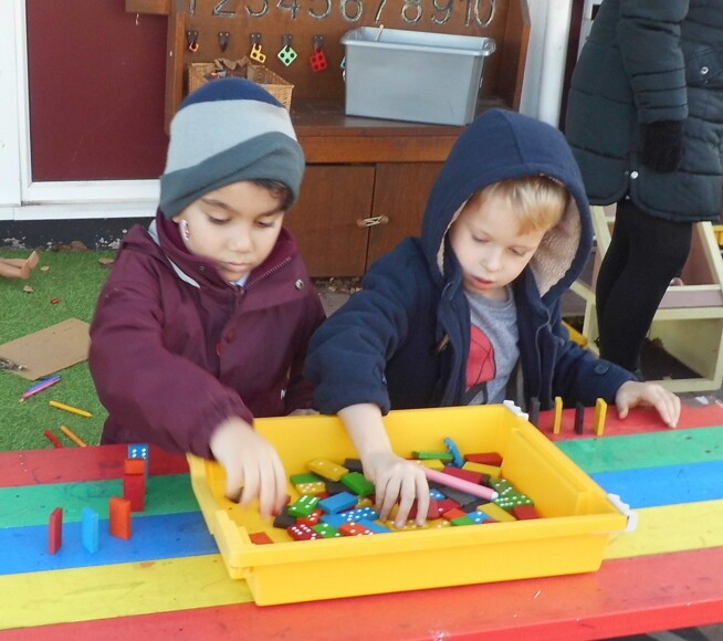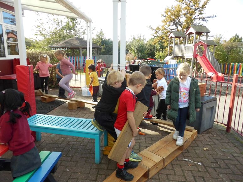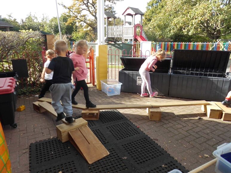 During the other outdoor sessions, the children focus their play on developing a PSHE objective, such as sharing, taking turns, being polite and playing fairly.
