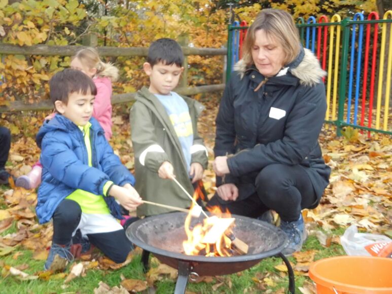 During the Forest School session, children learn new skills, such as whittling, as well as having the opportunity to play imaginatively in our mini woodland area. They also enjoy a campfire, where they can cook popcorn and marshmallows.